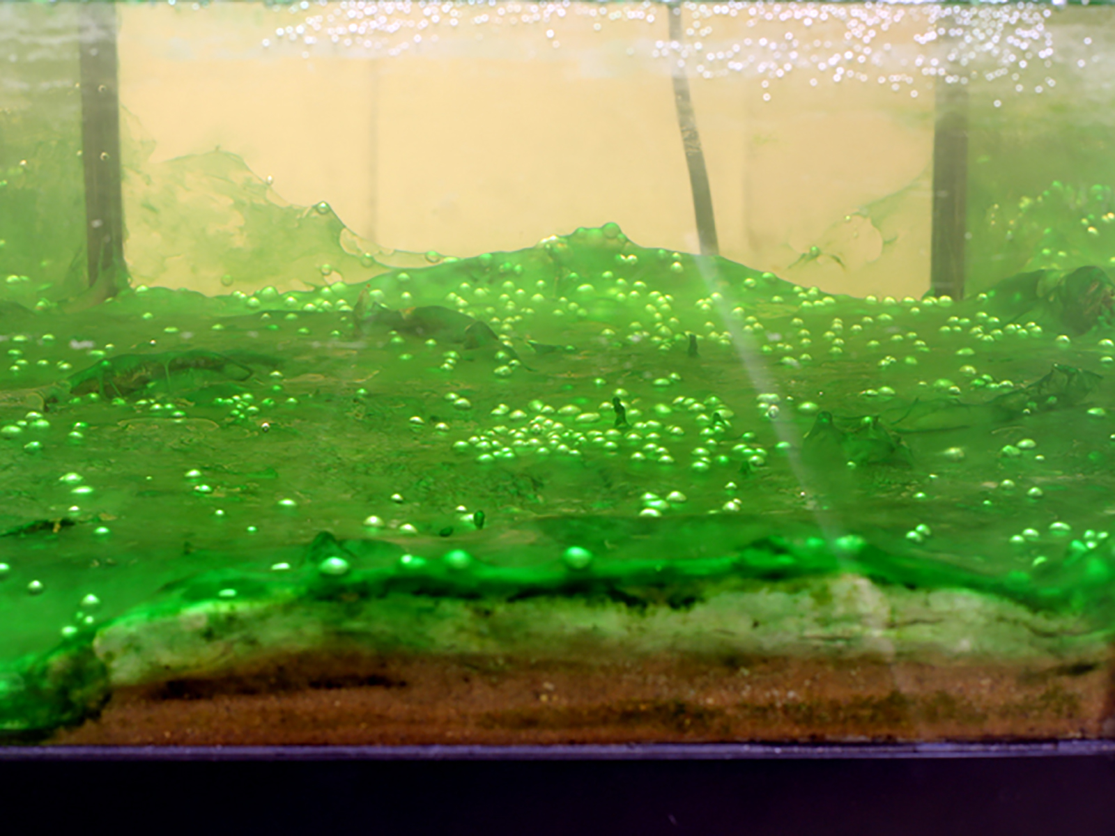 Цианобактерии способны существовать в крайне экстремальных условиях, в которых не выживет никто другой – в пересыхающих морских лагунах и заливах, в пустынных соленых и содовых озерах, в горячих вулканических источниках. Скопления цианобактерий выглядят как тонкие слизистые пленки, покрывающие дно и камни.